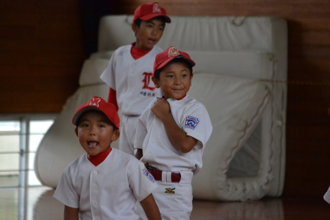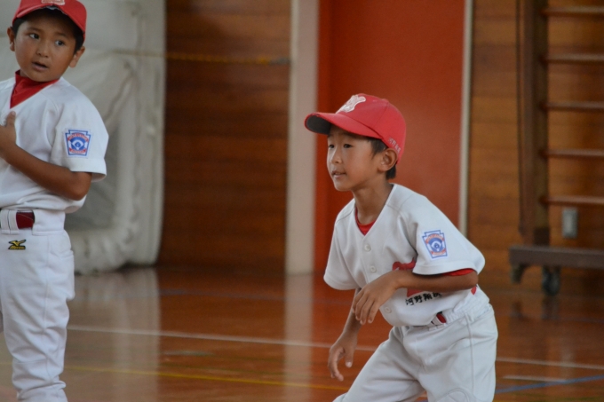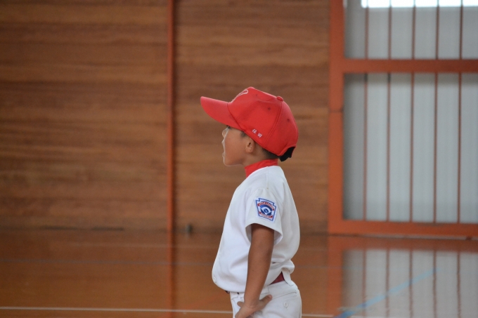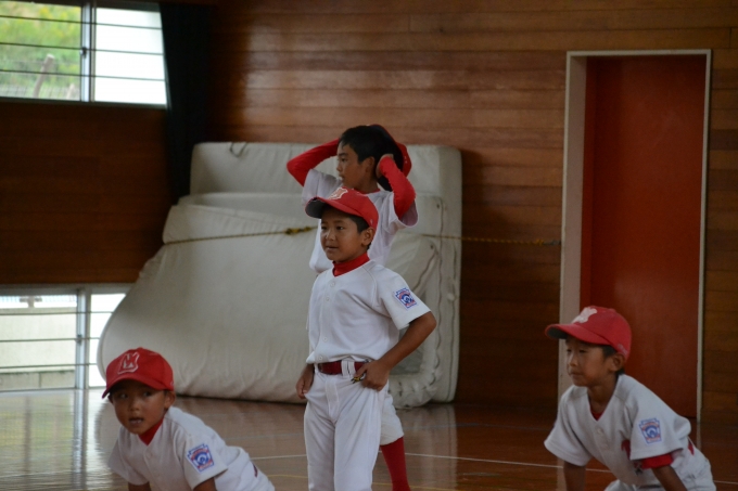 雨が降り、先に体育館練習している長崎東リトルさんと合同練習になりました。