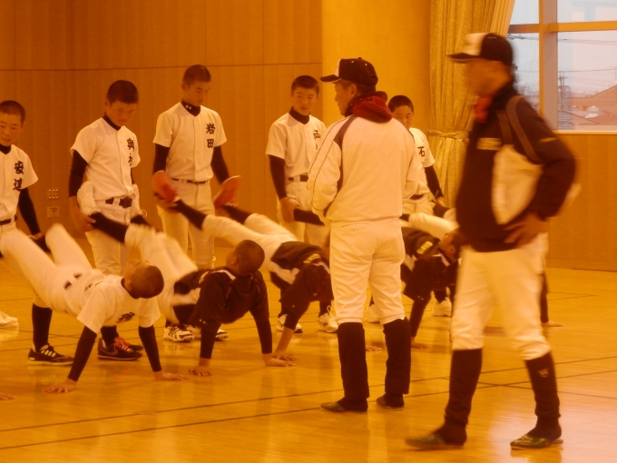 午前は坂巻グランドにて、午後からは雨が降ってきたので、体育館に移動して練習を行いました。