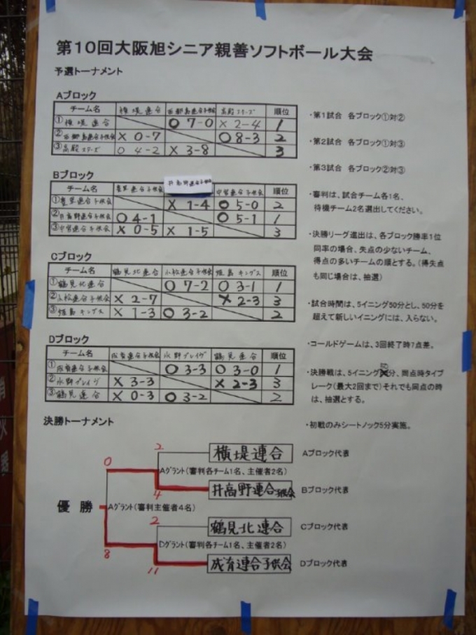 2015年 1月10日(土) 第10回大阪旭シニア親善ソフトボール大会を開催いたしました。