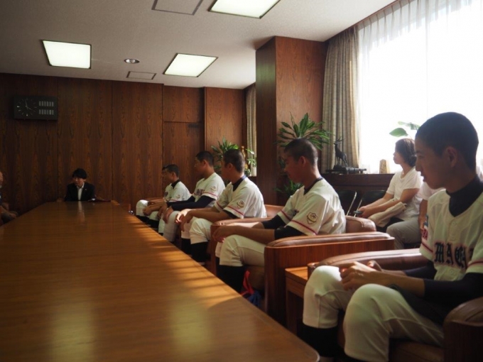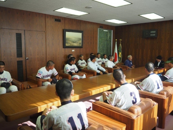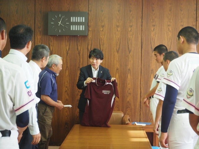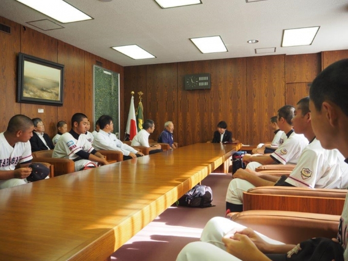 7/26 東アジアU-15ベースボール宮崎大会出場報告に清水鎌ケ谷市長を表敬訪問しました。
