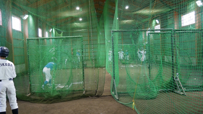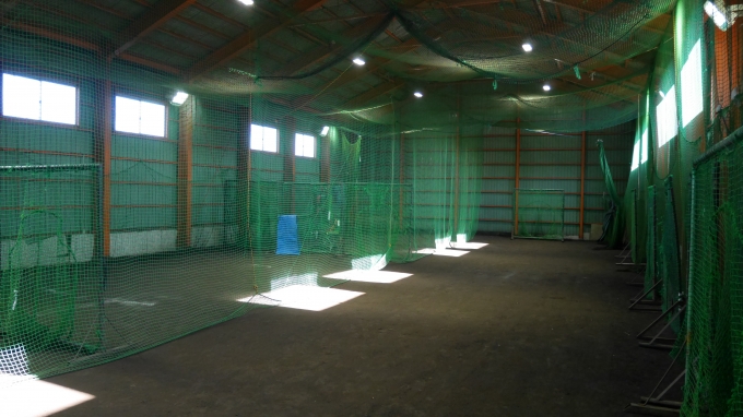 石狩市花畔103番地に約110坪の室内練習場があります。雨天時、冬期練習に使用しています。