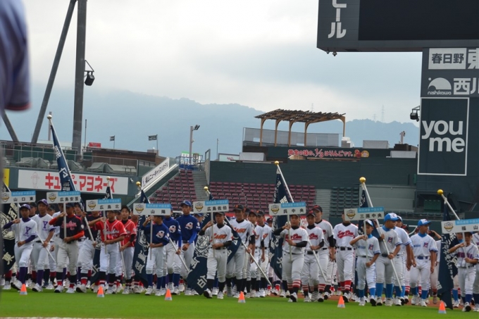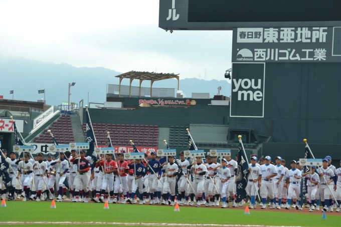マツダスタジアムで行われた秋大開会式での選手達の勇姿。