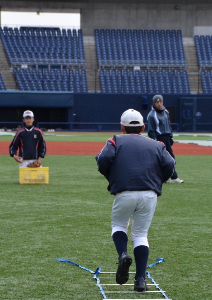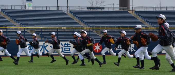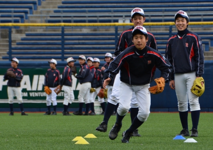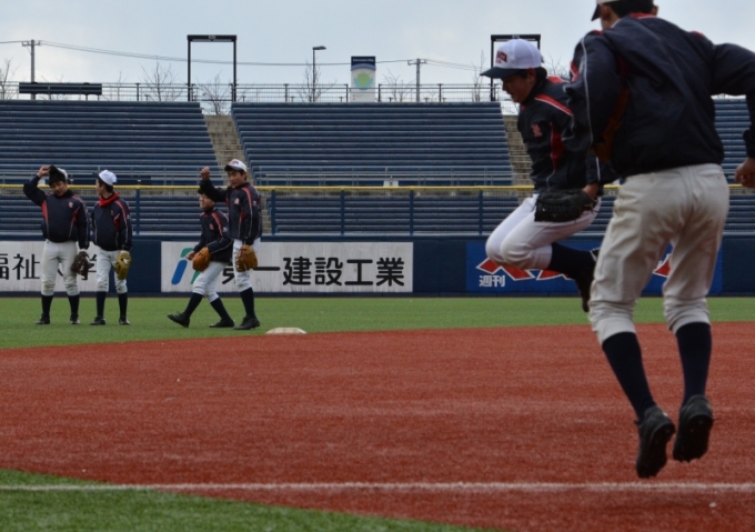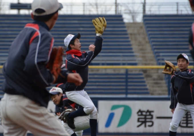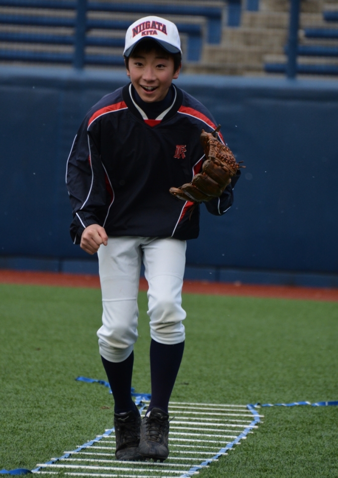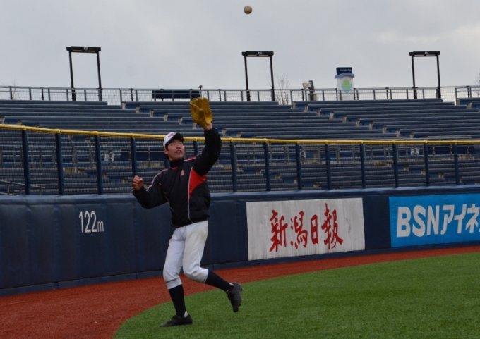 県最高峰のスタジアム「新潟ハードオフエコスタジアム」にて,悪天候の隙を突き,昨日,本日と熱のこもった守備練習が行われました.