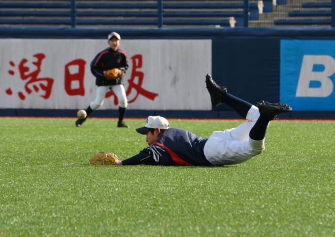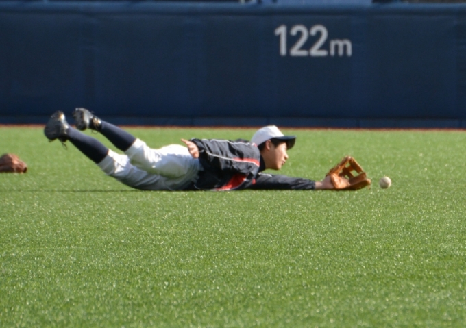 フライの捕球前は皆さん格好いいが