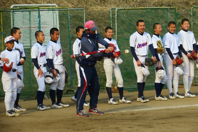 2月10日の卒団式直前にも関わらず、8期生の面々が練習体験会の応援に駆け付けてくれました。監督は、すでに高校の練習が始まっていると檄を飛ばしてくれました。