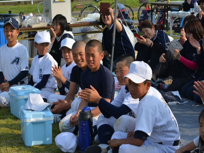 緊張の面持ちの新入団生でしたが、入団式後は父母とソフトボール対決。