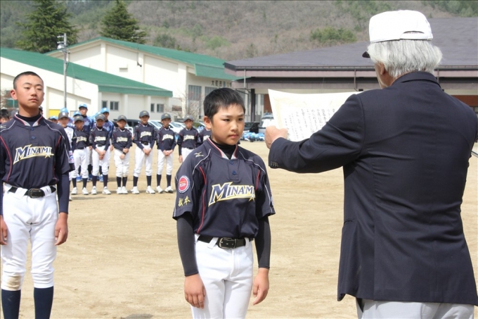 優勝 賞状授与 波田リーグ