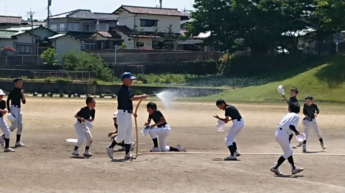 水を浴びながら、厳しい練習を乗りきりました。