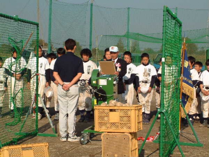 > 2004/11/23浦田健様からのバッティングマシン寄贈式(平成16年11月23日)