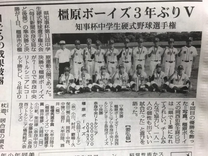 > 2019/09/01 奈良県知事杯 決勝vs橿原ボーイズ