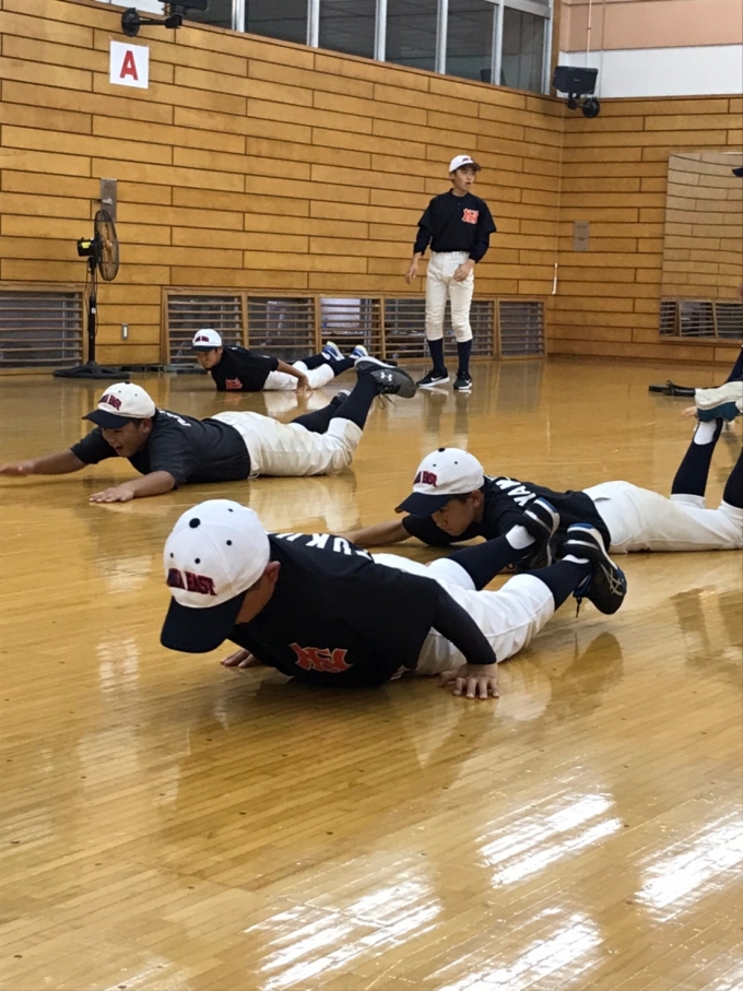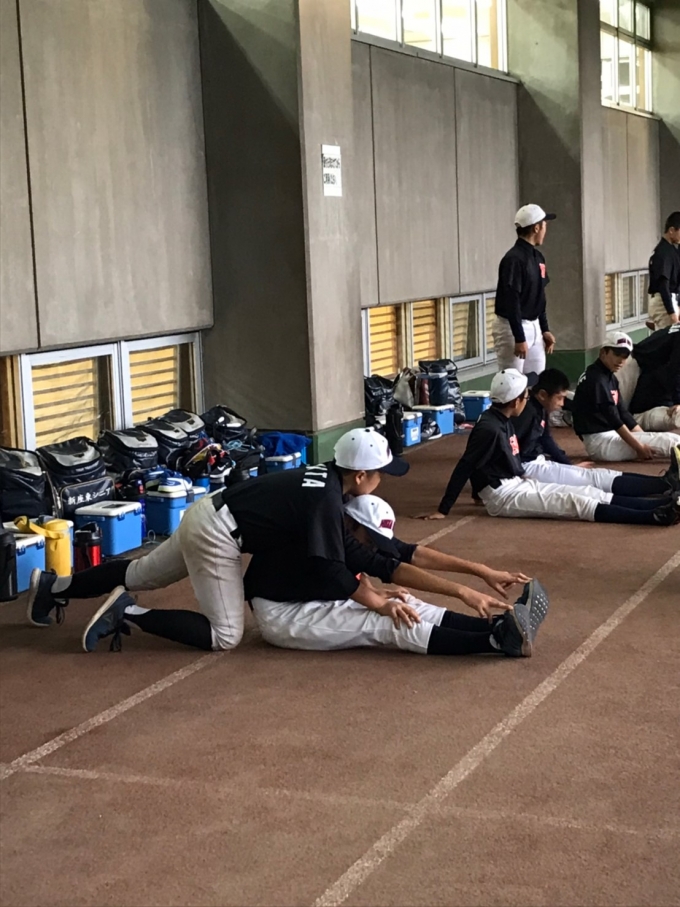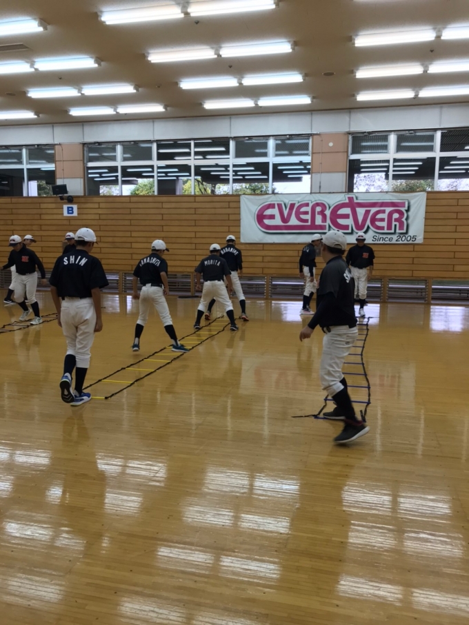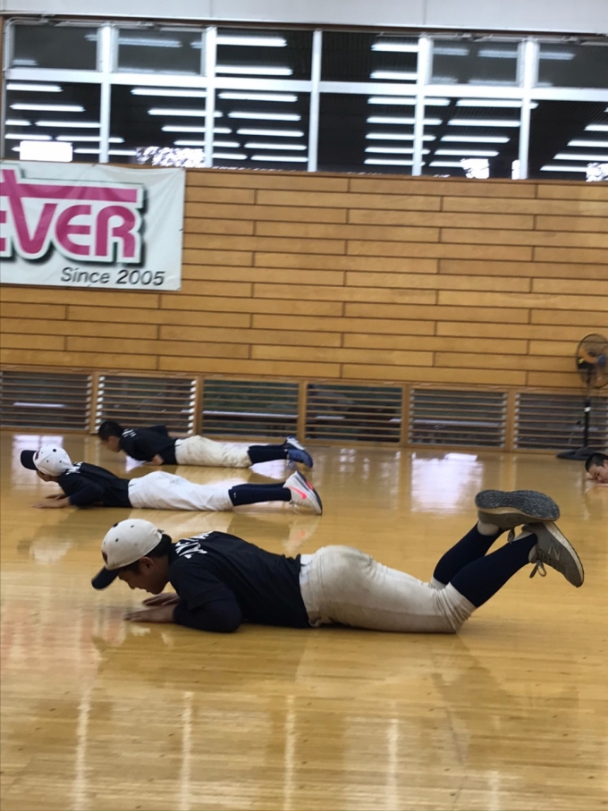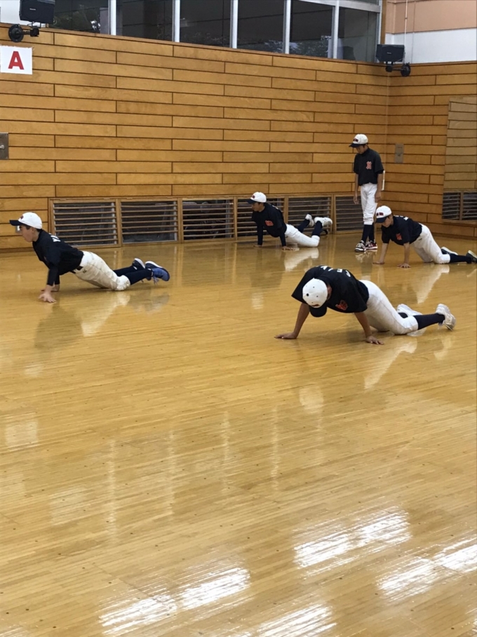 本日は雨の為、体育館での雨天練習でした。