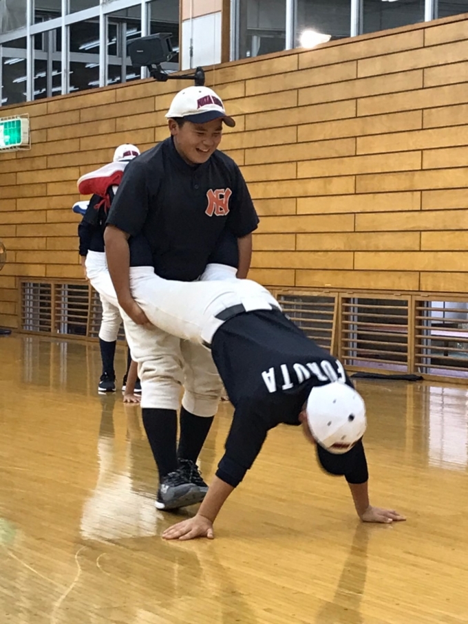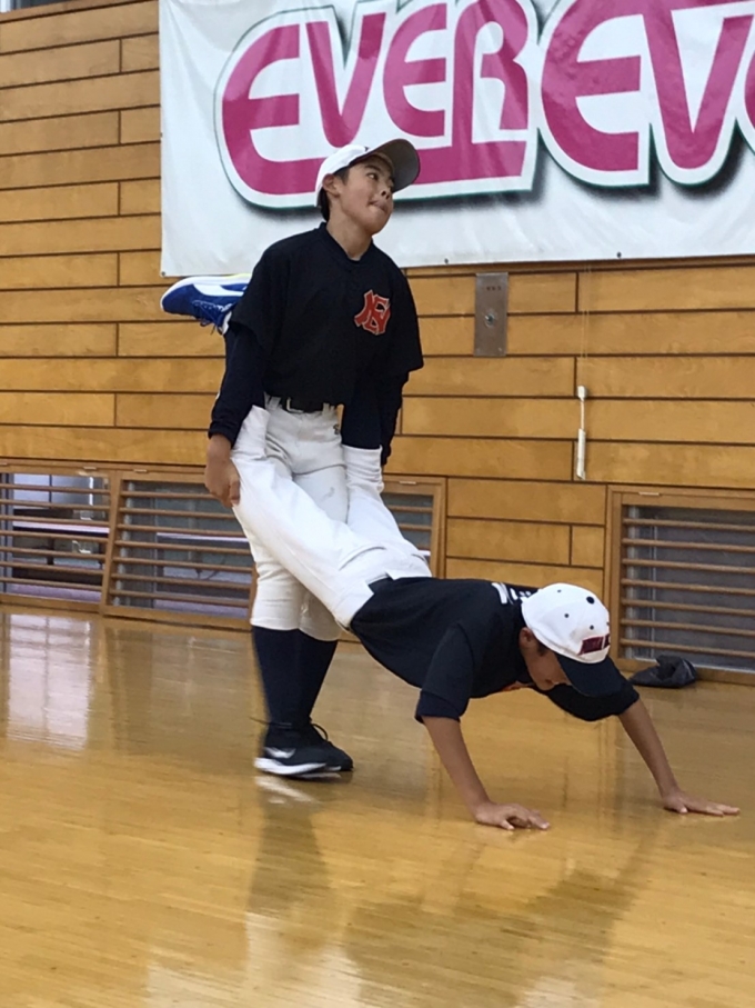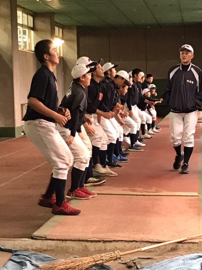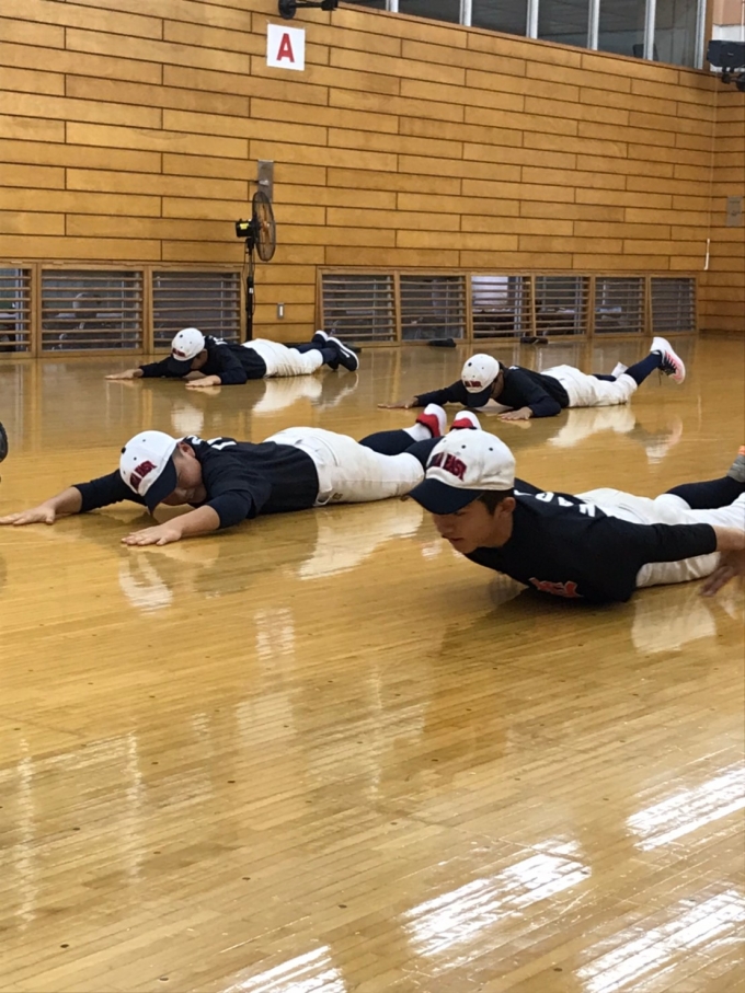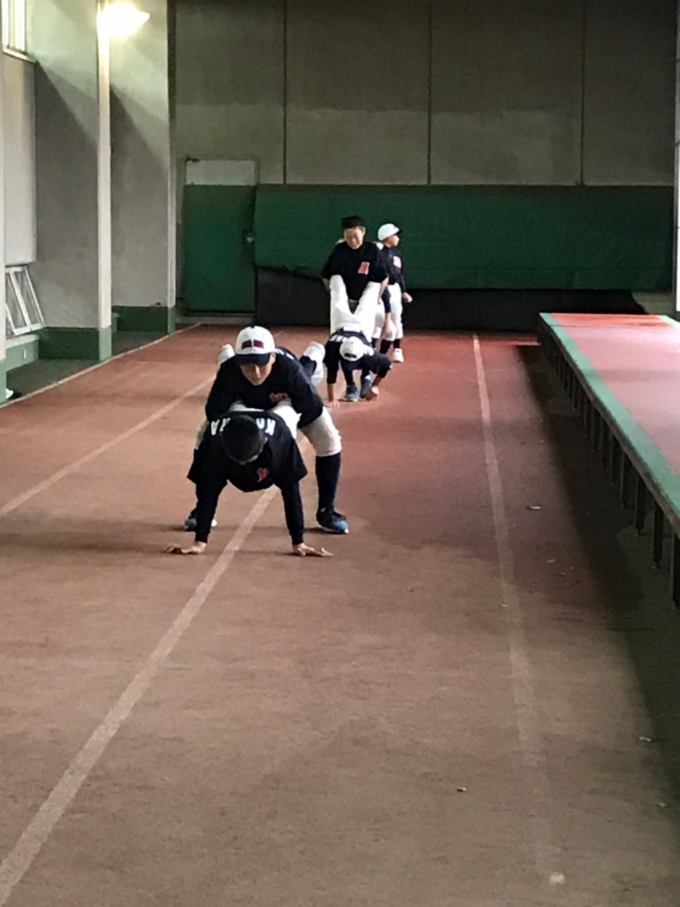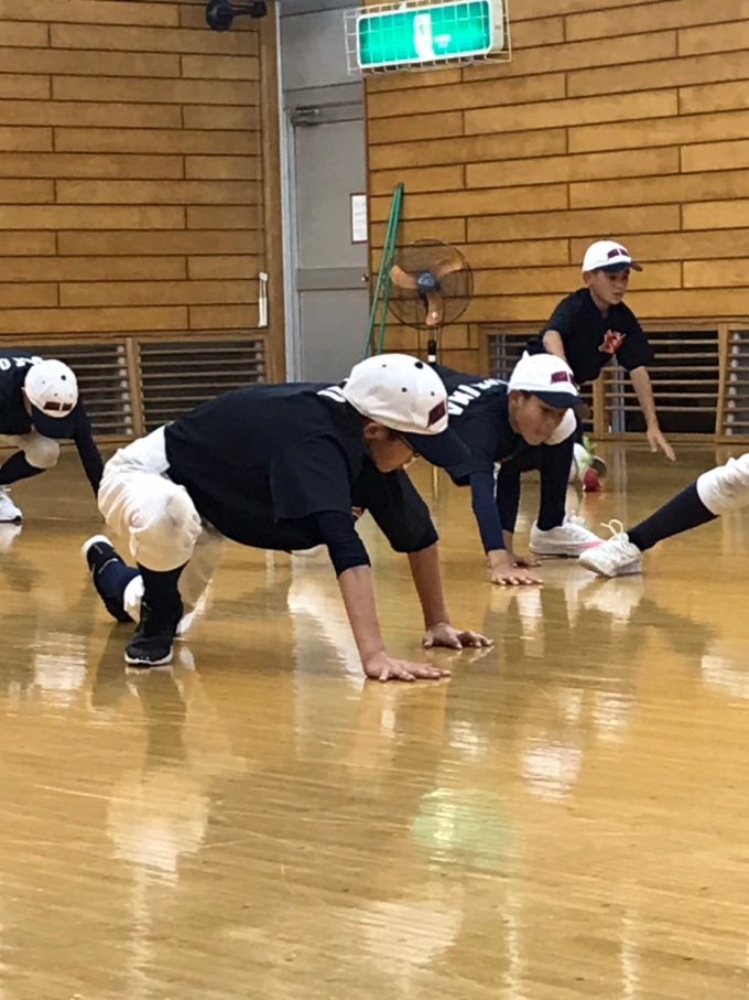 本日は雨の為、体育館での雨天練習でした。
