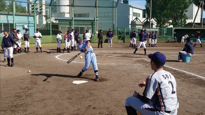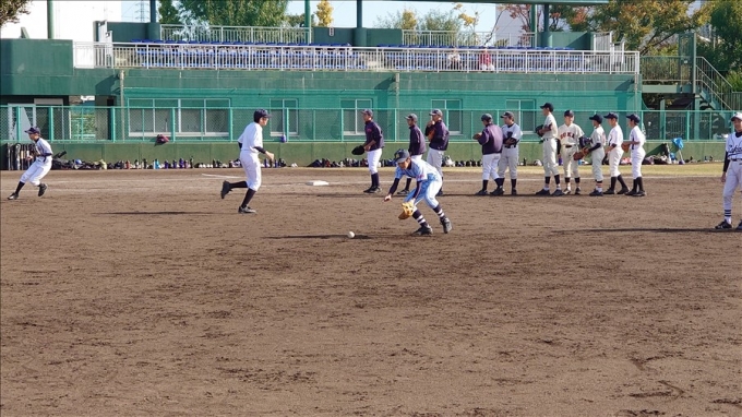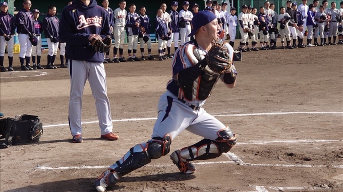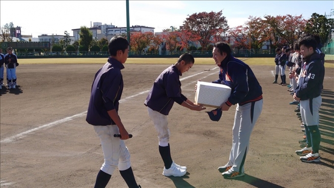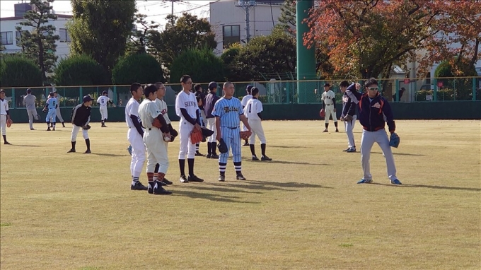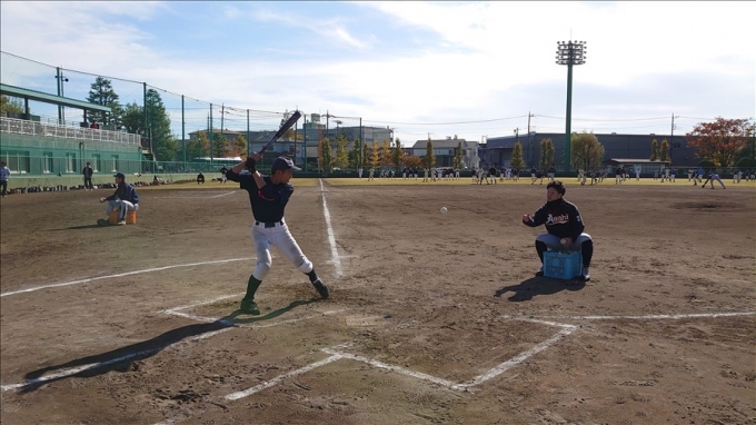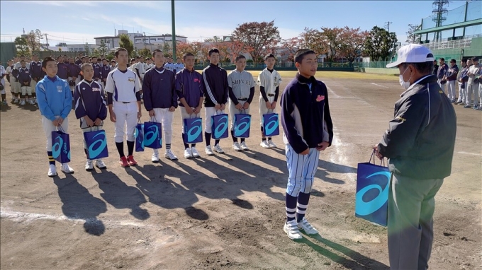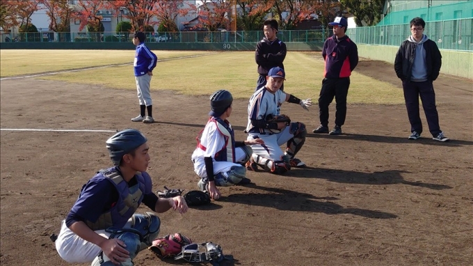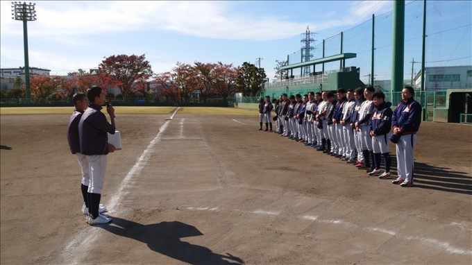 旭鋼管工業野球部が草加市内中学校野球部員に技術指導を行いました。
