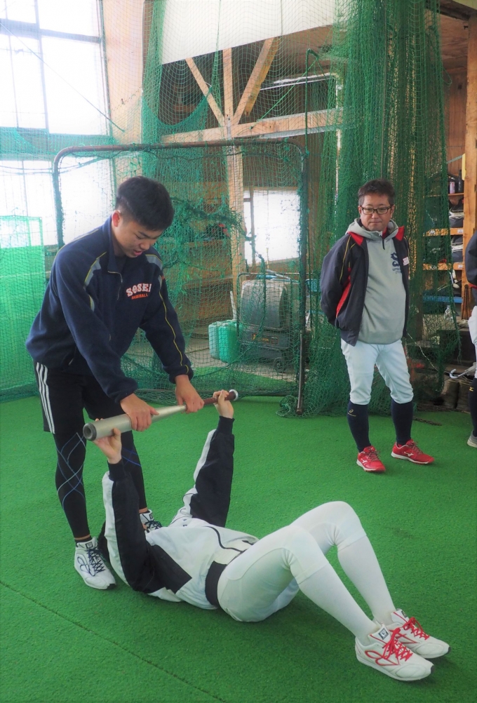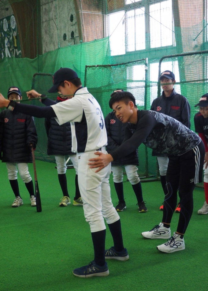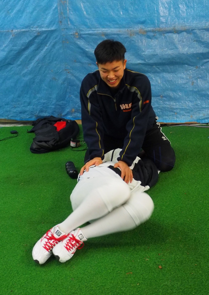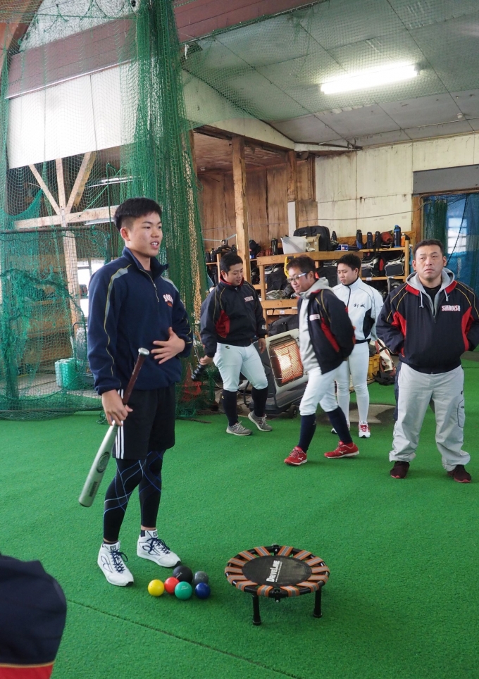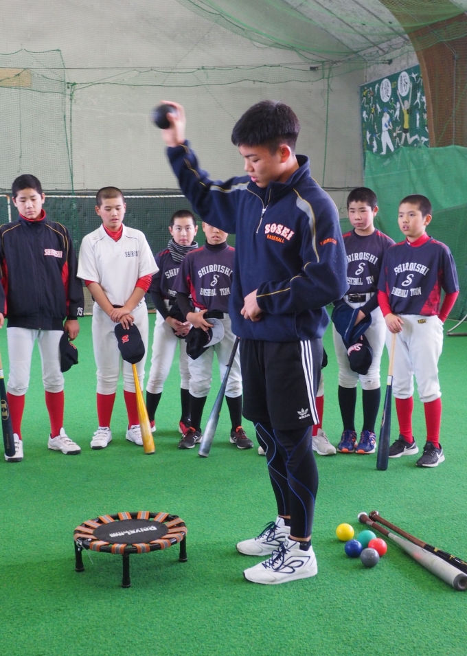 中日ドラゴンズドラフト6位指名を受けられました、札幌創成高校「竹内龍臣」選手が練習に参加してくださり、普段竹内選手が行っているトレーニングなどを指導してくださいました。