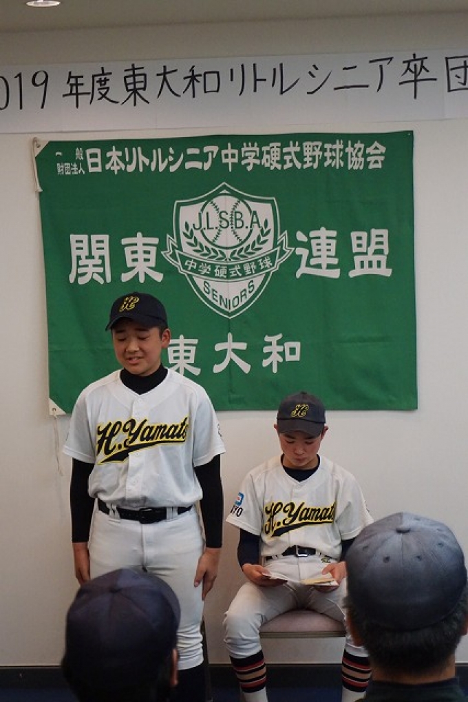 2019年度、第4期卒団生(2名)の卒団式を行いました。