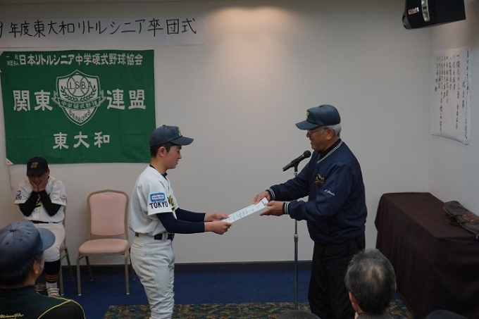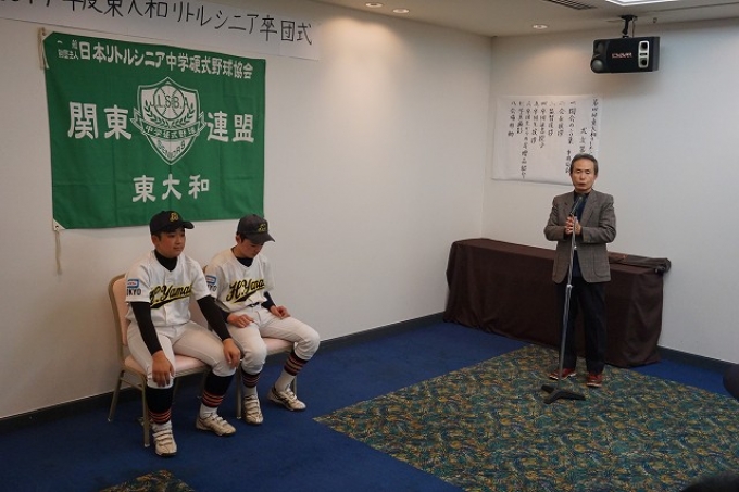 第2部の感謝の会ではスライドショーを見ながら会食をしました。卒団生の監督や父母への言葉ではその成長をしっかりと見て取れました。野球を含めた今後の人生に東大和シニアで培った経験を生かしてください。頑張れ!東大和魂!