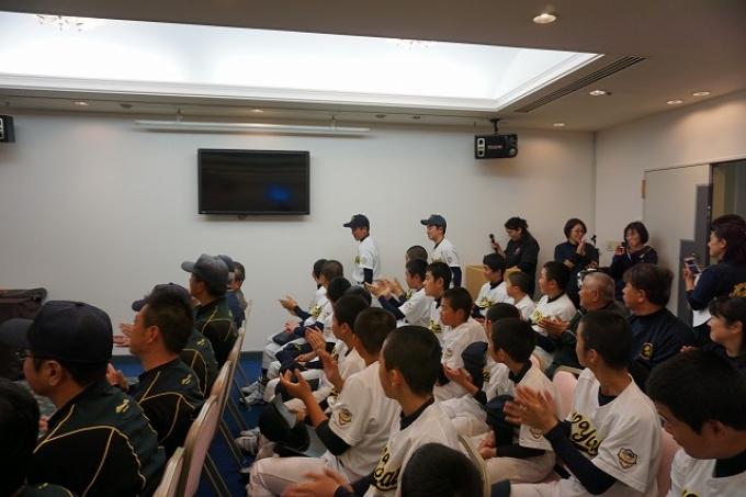 監督からの卒団証書の授与・卒団生の挨拶と寄贈品の紹介を行い、