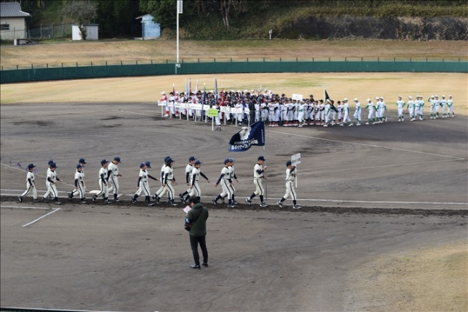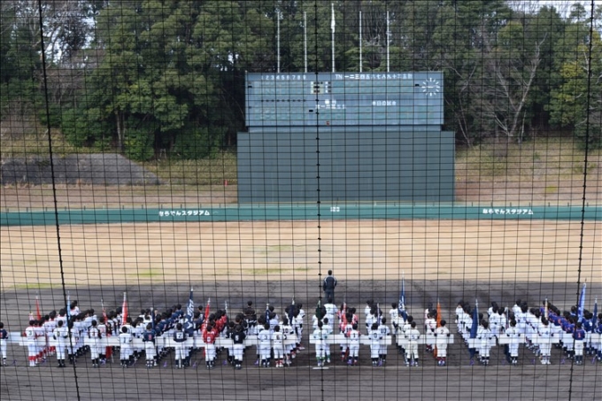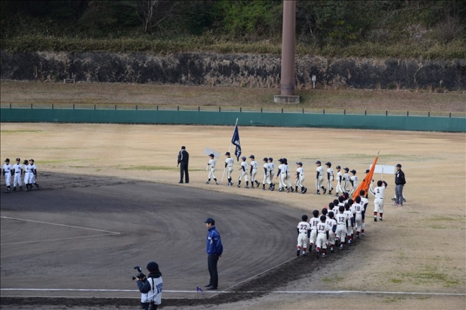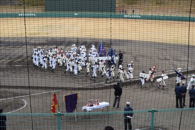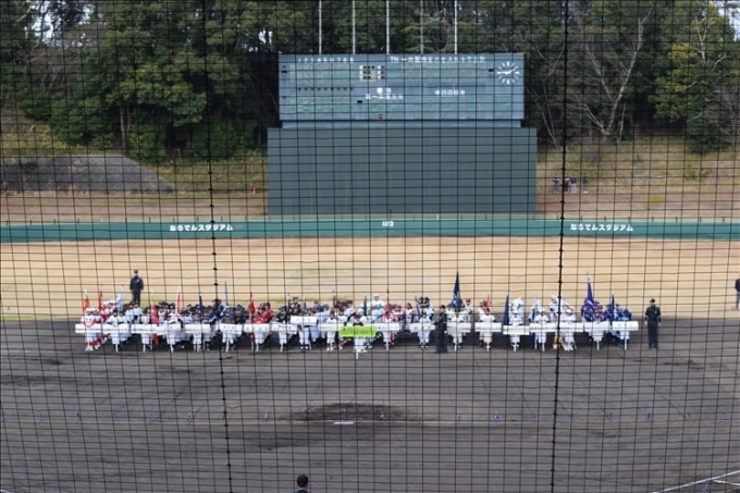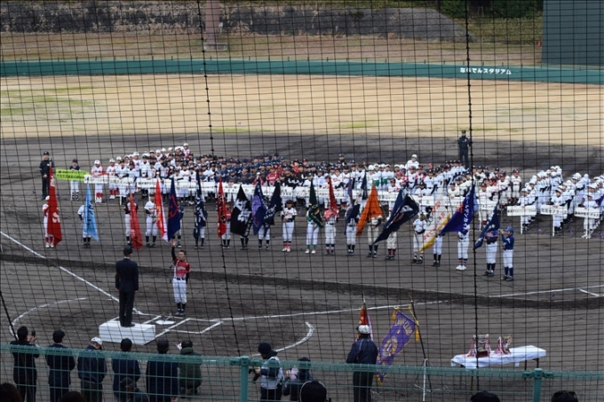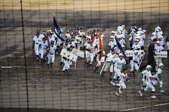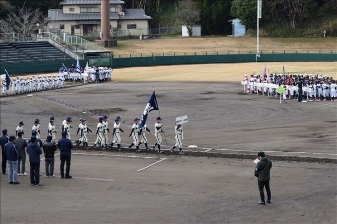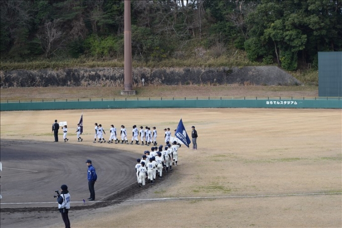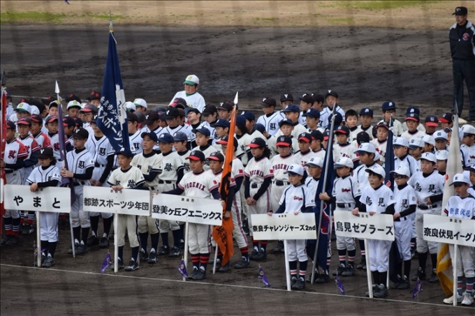 ならでんスタジアムにて開幕式! 皆で元気に行進しました。