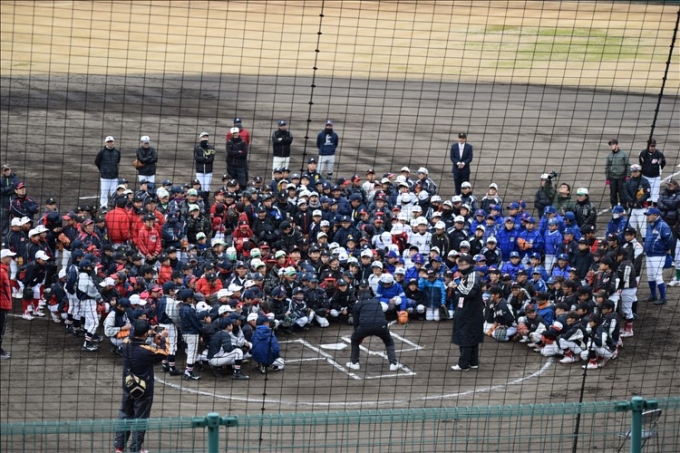 野球教室では、元横浜高校・渡辺監督からの大切なお話を聞きました。