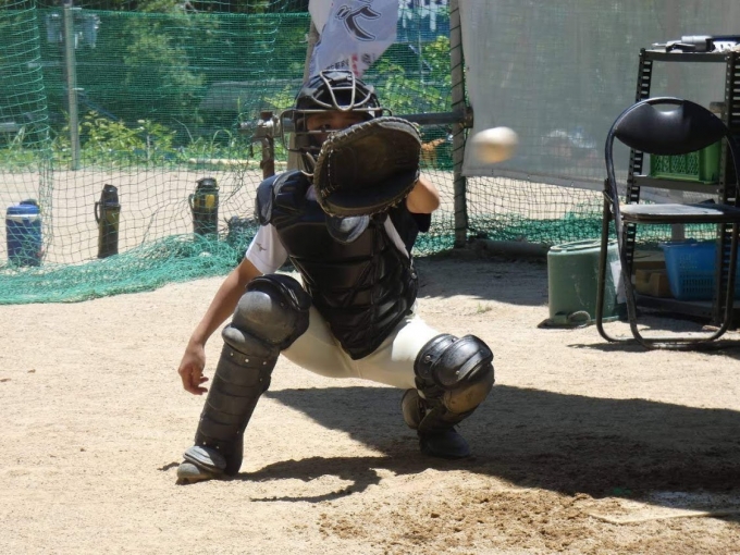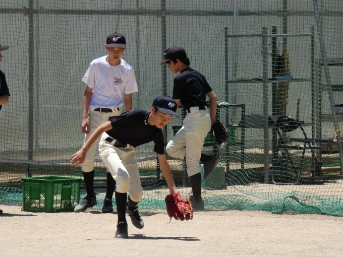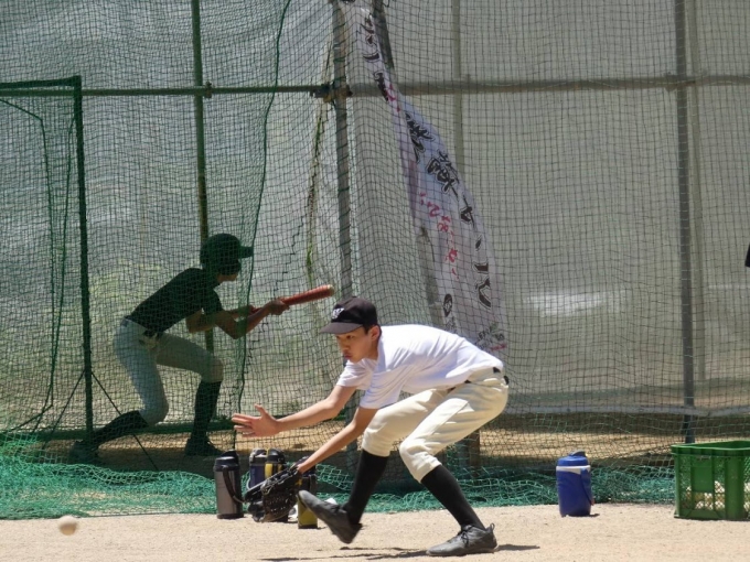 6月の快晴の下専用グランドにおいての練習