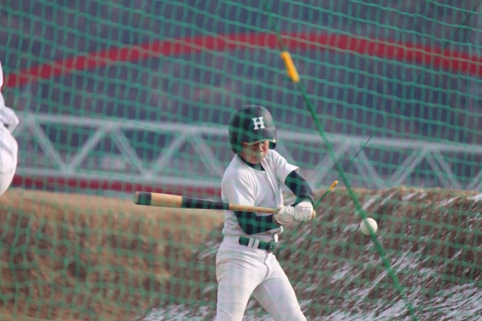 朝一、グランドに雪が積もっていて