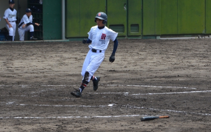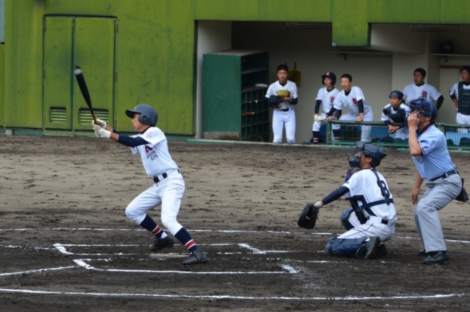 二回表 エラーで出塁の宮嶋を一塁において目黒がライト前へ