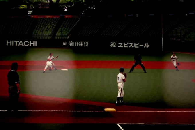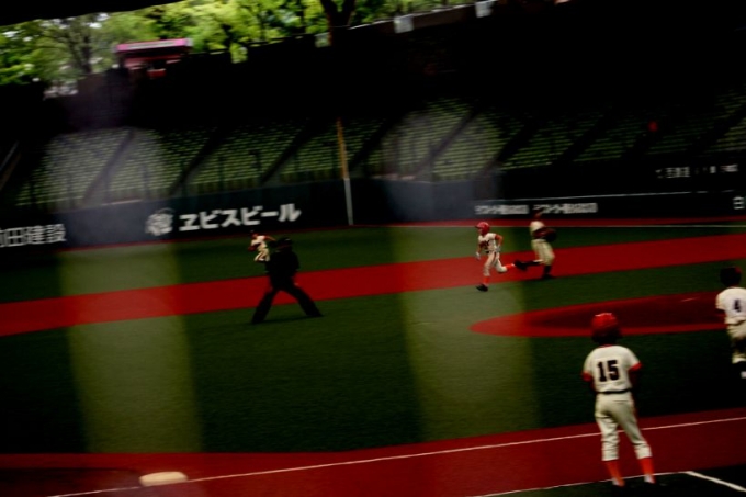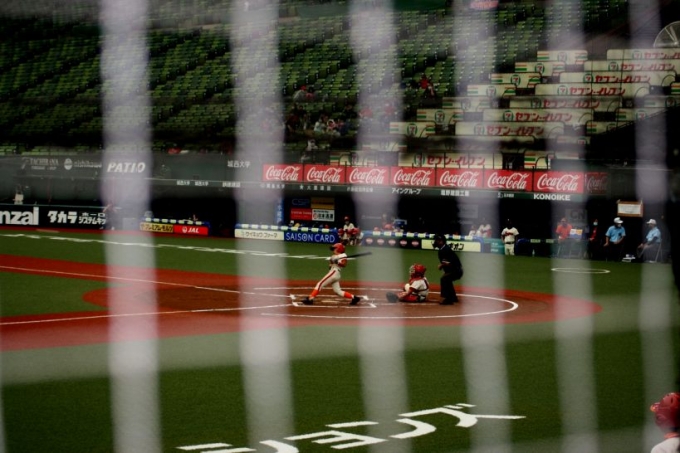 さて、試合に突入です。メットライフも東京ドームもそうなんですが、スタンドから写真を撮るのは大変難しいです。被写体までの距離もありますが、照明が野球をやるにはいいけど。写真にはかなり暗い。そして、ネットがあるからピントが合わないんです。そんな中、久保田カメラマンが奮闘してくれました。感謝です!
