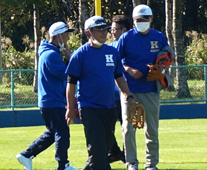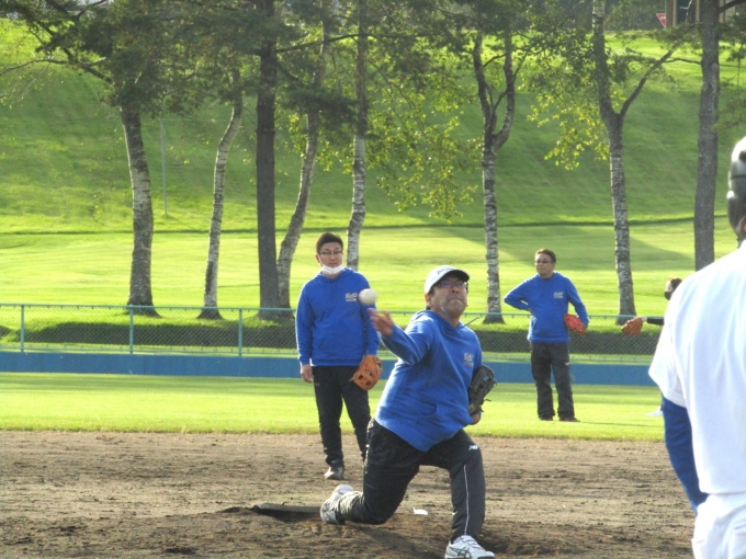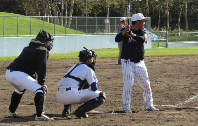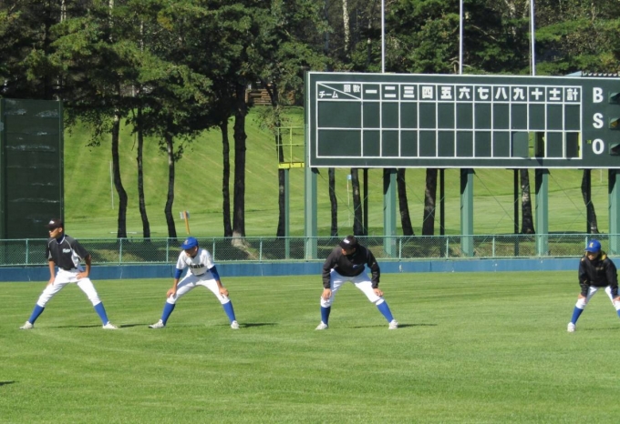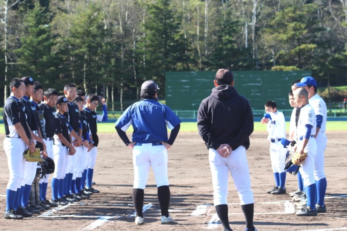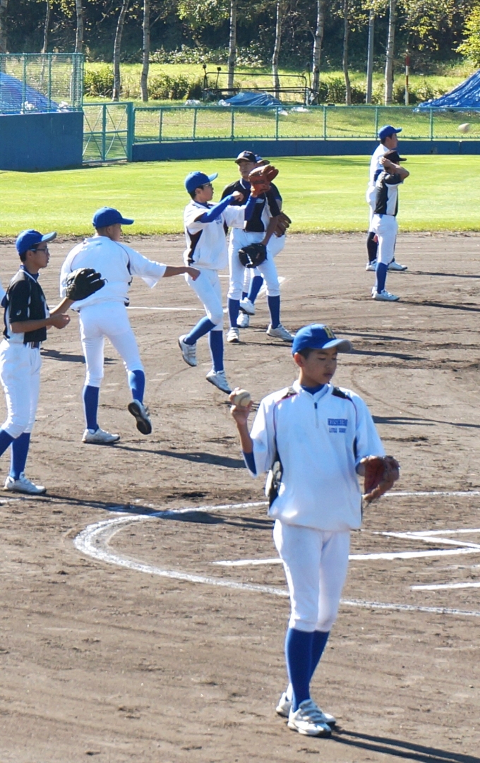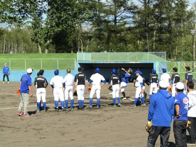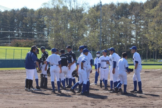 「秋晴れ」に、鶴居村球場で15期生の引退・親子試合を行いました。