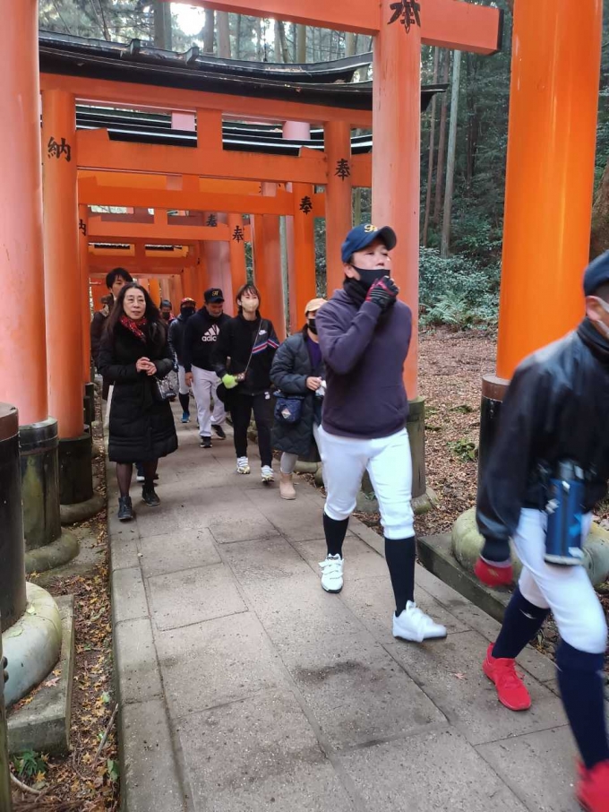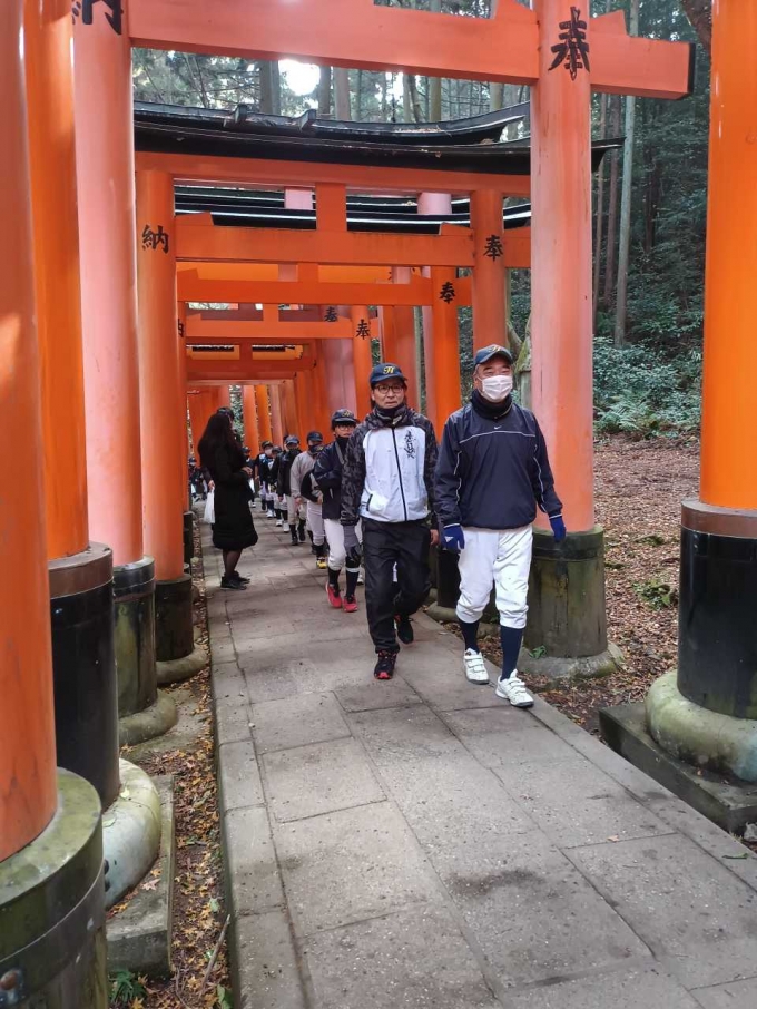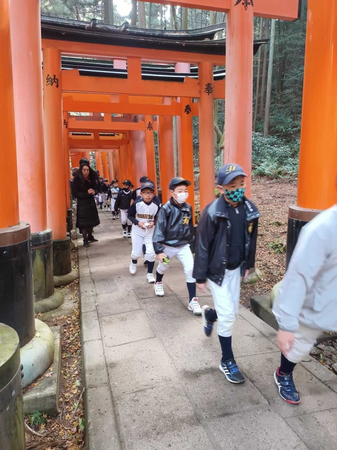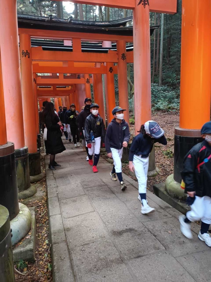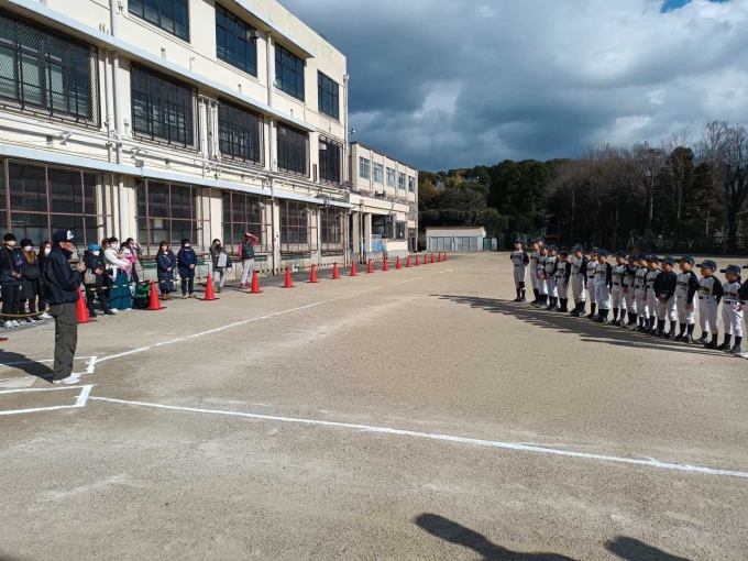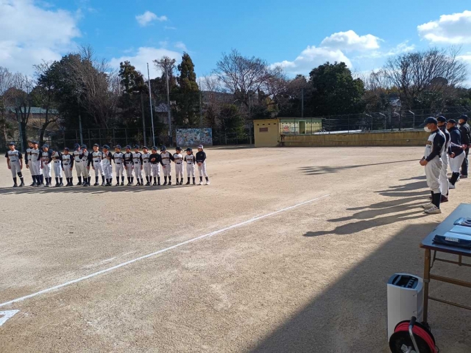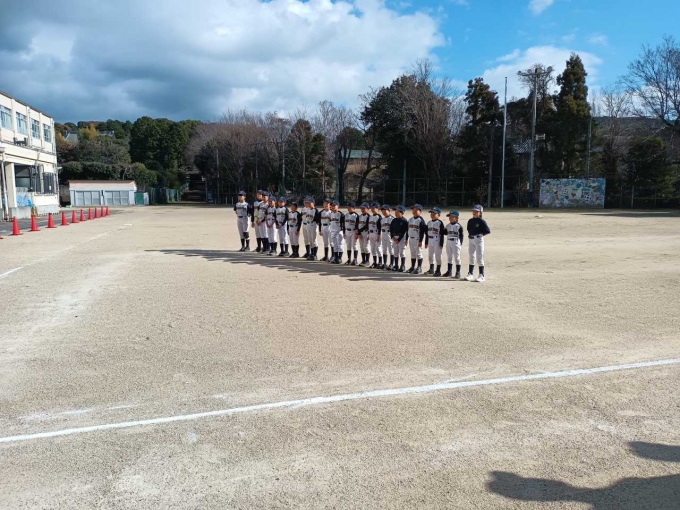 2023/01/08令和5年初練習です。稲荷山登山をし今年の目標を発表しました。また、年始式で今年の背番号を授与しました。