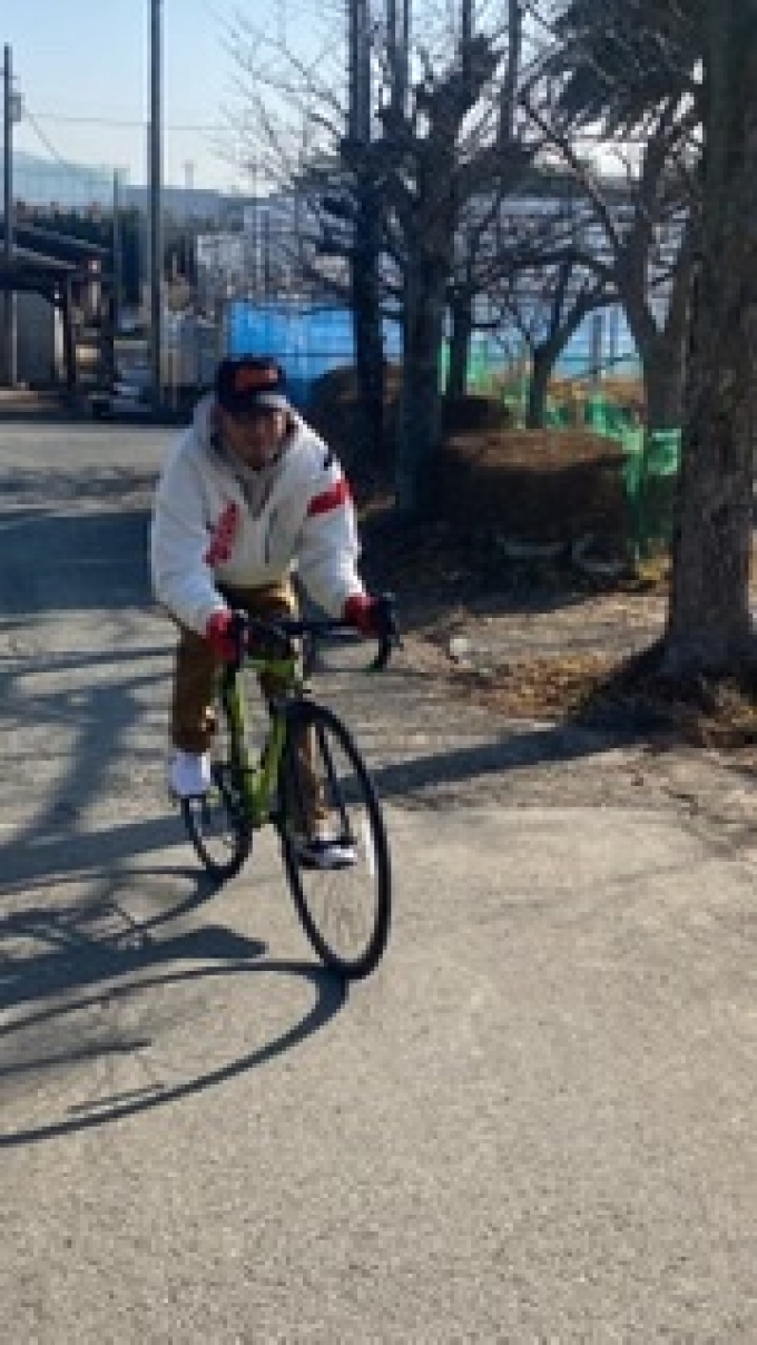 (父兄が自転車で伴奏)