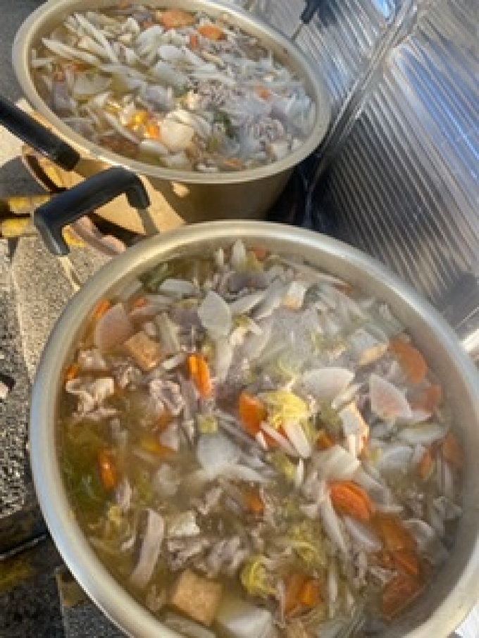 帰って来て父兄会からの炊き出しをいただきました。