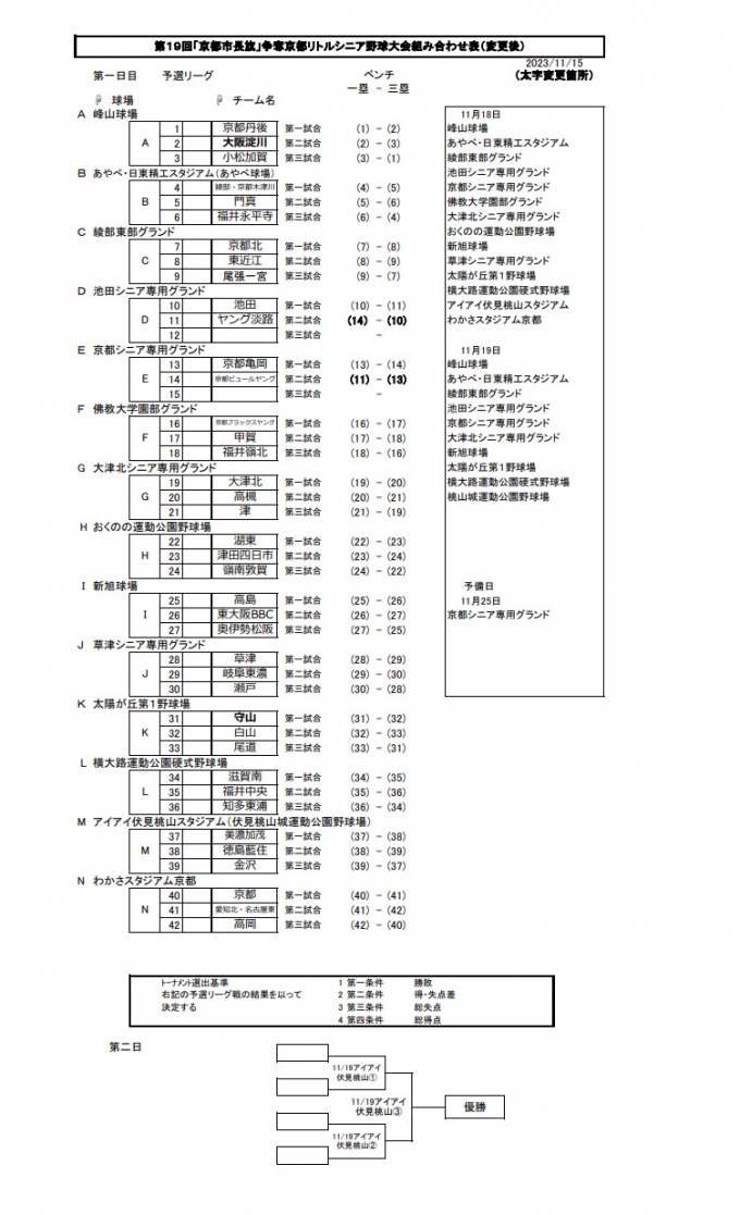 > 第19回京都市長旗京都リトルシニア大会