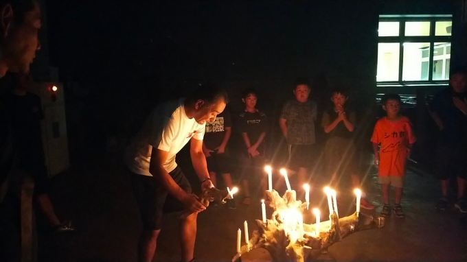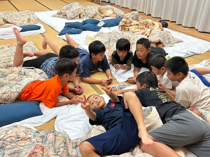 今年の夏合宿は、飯能の名栗げんきプラザに行ってきました。子どもたちは仲間とのお泊り会で大喜び。初日はキャンドルサービス、二日目はカレー作りからの川遊びで楽しみました。みんなでご飯を食べてお風呂に入って夜更かしもして一緒に寝て。夏休みの最後に素敵な思い出になったね。この合宿を計画して下さった親御さんたちに感謝して、2学期も頑張ろう!…みんな宿題は終わってるんだろうな?
