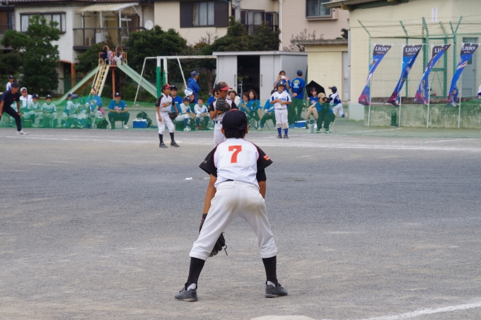 藤沢地区夏季大会Bチームの2試合目は、優勝をかけて上藤沢ライオンズさんとの試合でした。4対19と大差での敗北となってしまいました。先制点を取って序盤はいい流れだったのですが四球からピンチを招き、大量失点をしてしまいました。本当はもっとできるはずなのに、とみんな思っていたのでしょうが、ピンチから巻き返せないのはこれからの課題です。来年は優勝を目指して頑張ります!