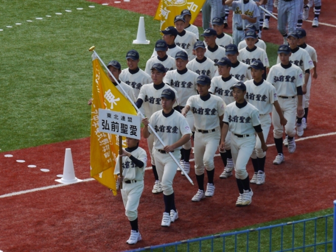 2009年東北連盟35周年大会では2回戦0-2和歌山、2013年北海道連盟40周年大会では2回戦1-0岩見沢、3回戦5-8長崎海星、今回は1回戦8-6仙台太白、2回戦4-0鳥栖(佐賀)、3回戦0-7仙台北でした。勝利数を少しずつ積み上げています。