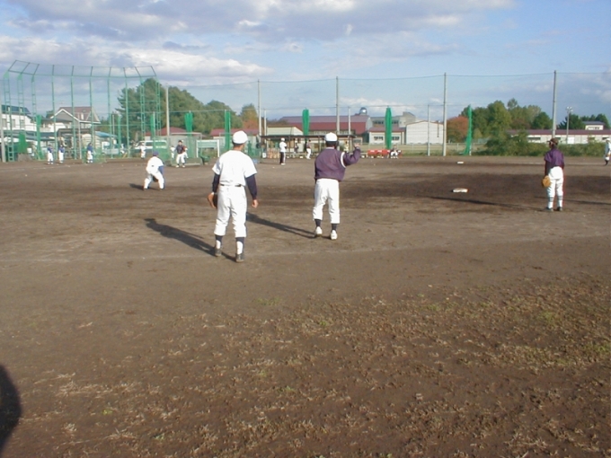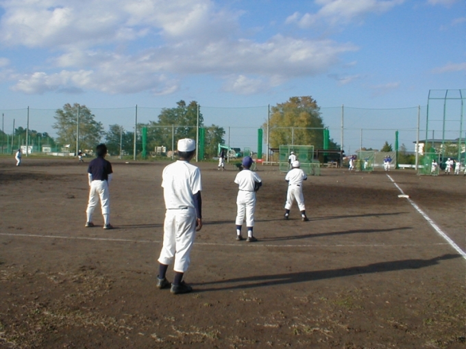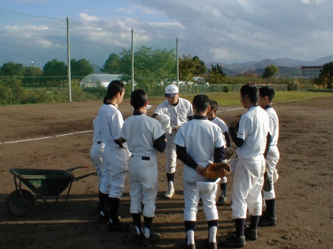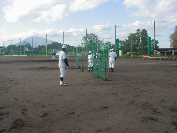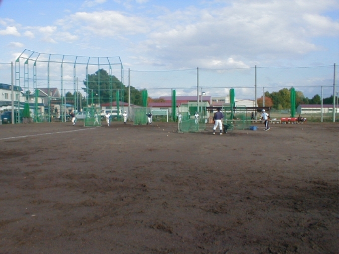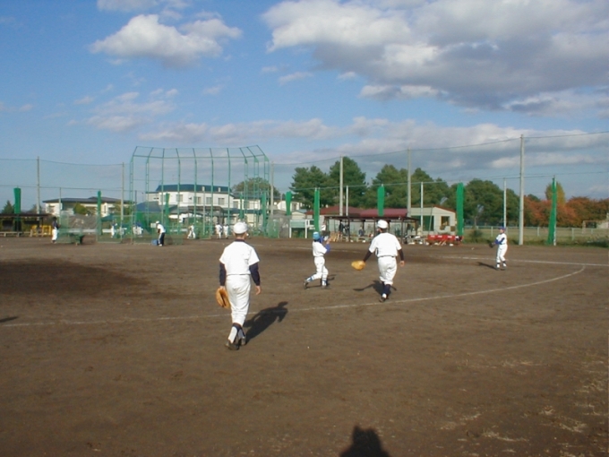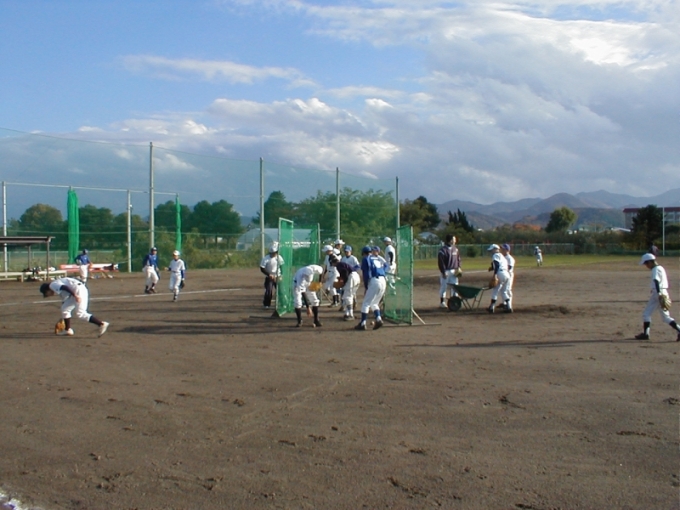 弘前学院聖愛高校野球場で初めてのチーム体験・説明会を行いました。翌年10名程度入団し、チームの体をなし格試合に出場できるようになりました。