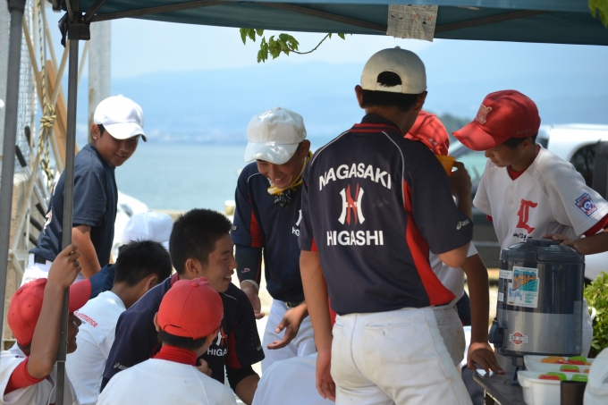 暑い中、長崎東リトルに選手6名が来てくれました。