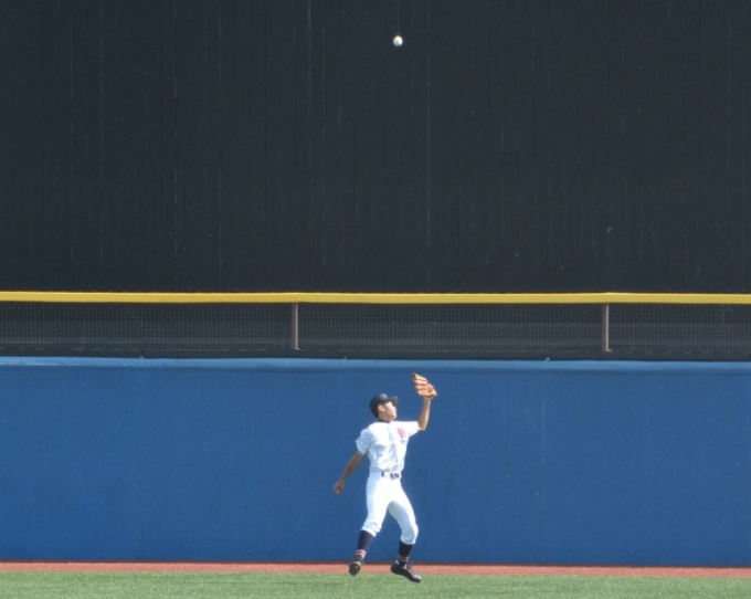深い外野陣のさらに頭上を大飛球が舞う
