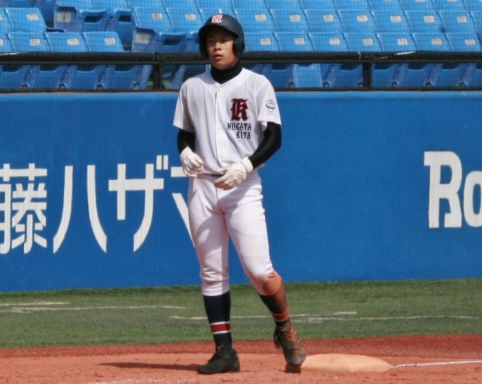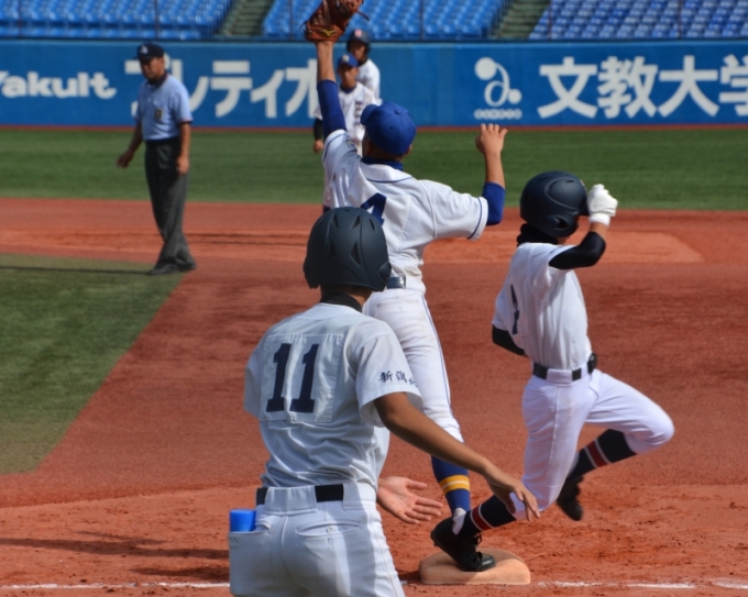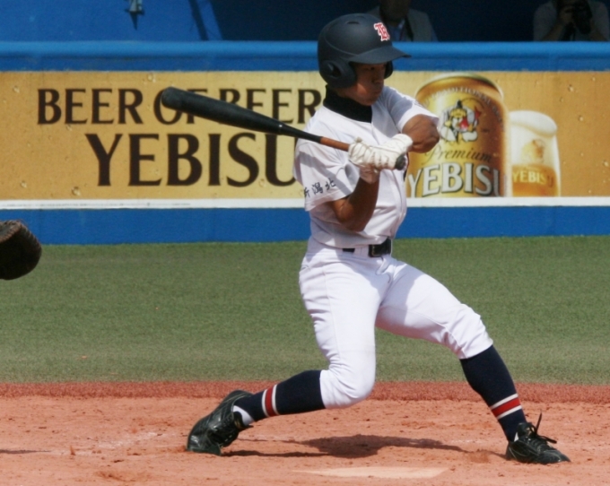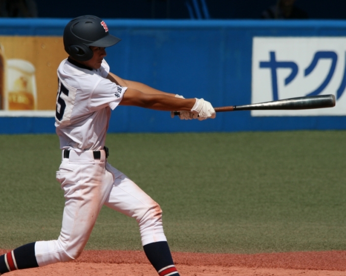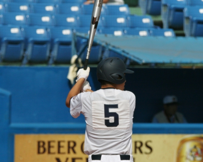 五回コールド寸前 相手のミスで二点を加えたあとに森田の右前打