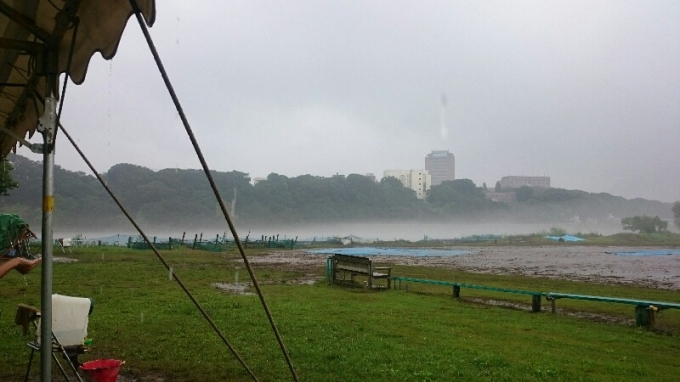雨の中頑張っています