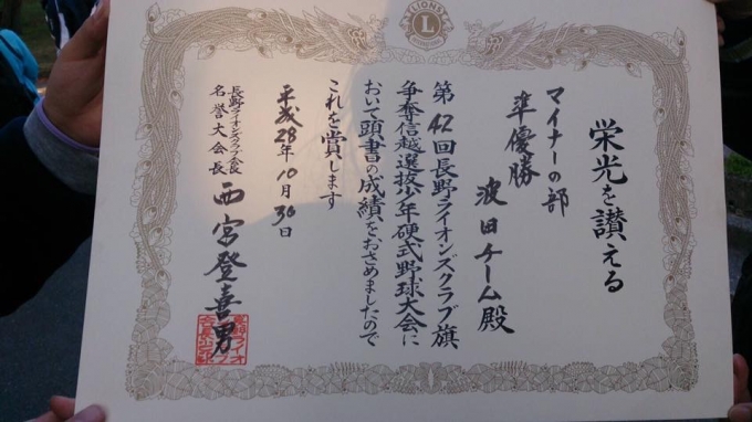 2016 第27回アルプスマイナー大会ユニフォーム授与式その2