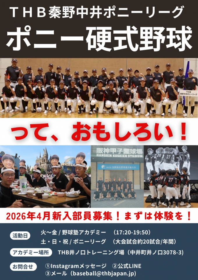 THB秦野中井ポニーリーグ -【中学部(中学1年生~中学3年生)/小学部(小学5年生~小学6年生)】-