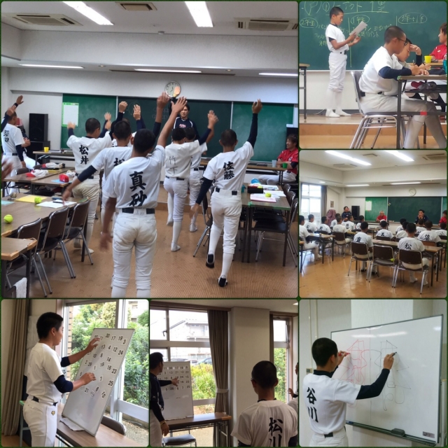 昨日の雨でグランド不良。午前中は座学と脳トレです。