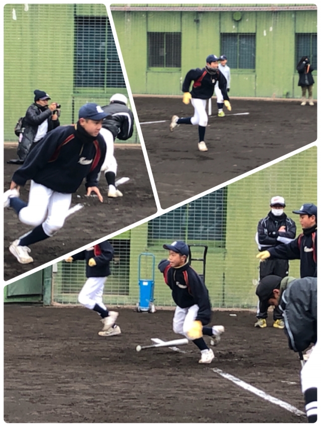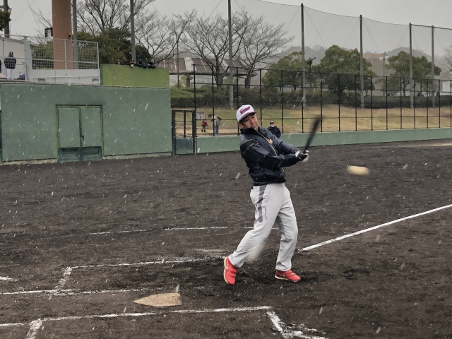 ボールが…外野ノックですよ。雪のせい?