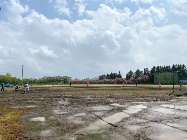 北上シニアさんと練習試合。普段、一番近くで活動していますが、対戦は初めてです。