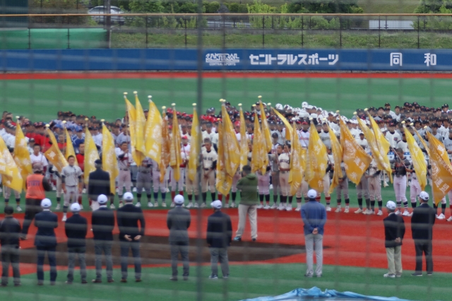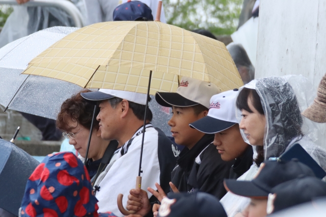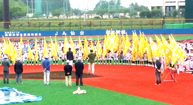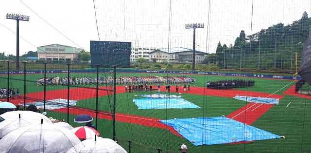 開会式は雨の中行われ、試合は順延となりました