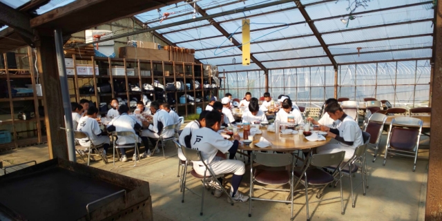 室内練習場にて朝食🍚