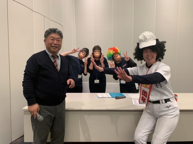 担当の事務局長と野球少年とサル達