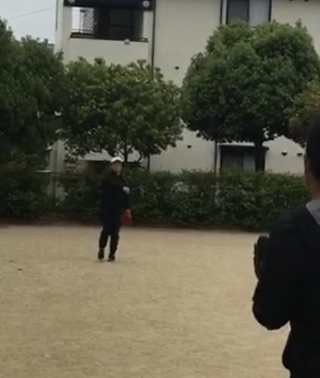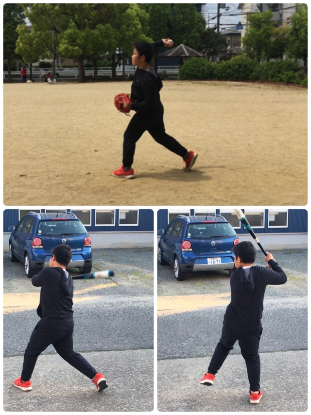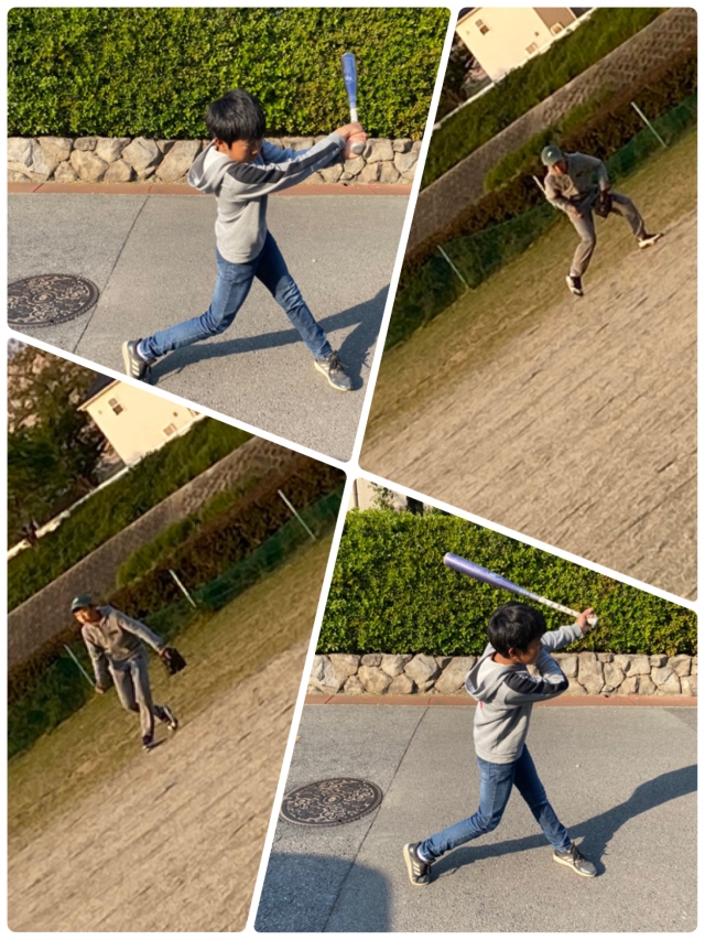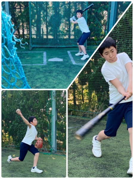 自分で投げて自分で打つ。1人練習。