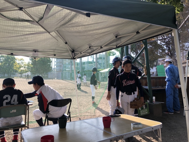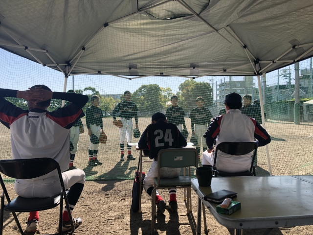 途中から監督帰ってきました。怒られるから、とりあえず、1年生は元気よくしとき